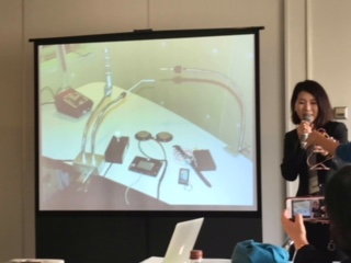 続いて三角山放送局の『声を失ってもラジオを続けたい —ALS患者のパーソナリティ 米沢和也さんの挑戦(15分版)』を聞きました。米沢さんは「呼吸器をつけ,まぶたまで動かなくなった場合,何も相手に伝えることができない。そういう状態が怖い。要は誰も何も聞いてくれない。伝えられない。土に埋められた棺桶の中に一人ぽつんといる,そういう恐ろしい恐怖にたぶん耐えられないんじゃないかと思う。でも最終的にはそういう状態になってしまう。」とその不安を静かに語ります。しかし, 当初, 呼吸器をつけてまで人であるのだろうか,他人である妻にそれほど負担をかけられるのだろうかと気管切開に抵抗を示していた米沢さんも,支援者さんとともに番組を続けるうちに,いつか医療が追いつくのではと人工呼吸器をつける決心をし,コンピューターで合成した声「ボイスター 米沢さん」として番組を続けます。三角山放送局の田島美穂さんは,米沢さんのほかにも,視覚障害の方がキューを振動で理解するために局で制作した「ぶるぶるキュー」など,放送のための補助装置をいくつか見せて下さりながら、パーソナリティの多様性を重視した試みについて紹介して下さいました。