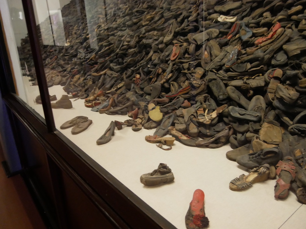 何日も立ったまま運ばれ、着くやいなや7割がガス室送りになったレールの終点と窓のない貨車。ガス室。そしてガス室で亡くなった人たちの毛髪。子どものおさげ髪。たくさんの靴にハイヒールが混じっているのは、ユダヤ民族は決して劣った人びとでないという主張もあったとか。そして証拠隠滅のために壊されたガス室。そうした悲劇のストーリーを感じさせる遺物・遺構の前で説明を聞きながら感じたのは、ドイツやナチスなどを悪者化し、そこに責任をすべて被せてしまうのではなく、ちょっとした憤りや差別や不満がたまり、火がつくことで、誰もが加害者にも被害者にもなりうるということでした。収容所はポーランド政治犯の収容にはじまり、虐殺は、生産性のなさを理由に、障害者に始まりました。ですから、一市民としては、小さな火種を見逃さないこと、そして傍観者にならないことが重要だと改めて感じます。昨今の高齢者に対する若者オピニオンリーダーたちの発言にもつながる話ではないでしょうか。