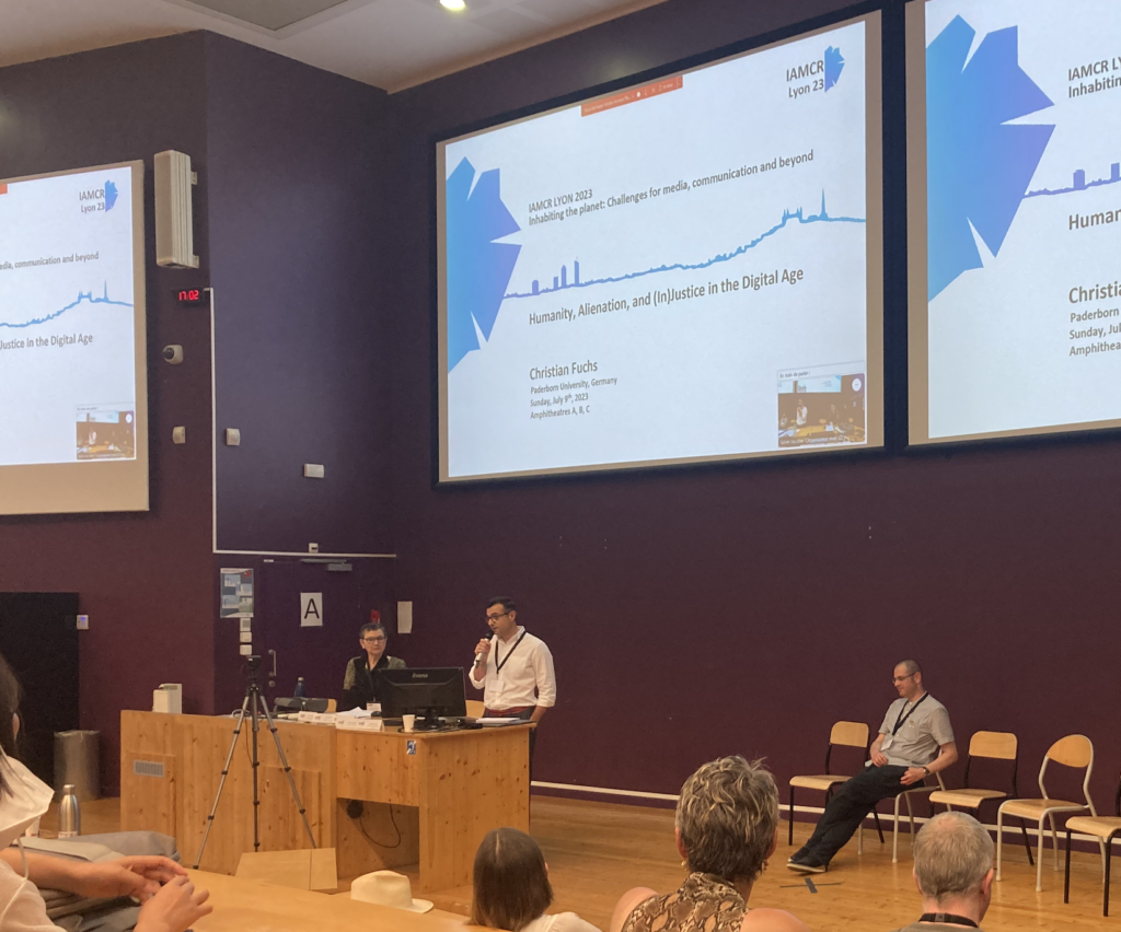 私自身の関心やIAMCRの姿勢も影響しているのでしょうが、今年はデジタル社会におけるポリティカル・エコノミーへの関心が高かったように思います。特にChristian Fuchs氏の基調講演は、これまでぼんやりと感じていたメディア・ネット企業や社会に対しての疑義がクリアにデータとして表されるもので、サウナのように暑い講義室で延々とメモを取りました。もちろん、それで今後の社会をどうしていくのか、という問いは残されたままですが、プラットフォーム企業に関する告発だけでなく、メディア企業がいかにエネルギーを消費しているかなど非常に刺激的な視座と内容でした。ウェブサイトを見ると、ポッドキャストなどさまざまなメディアで情報発信をされているようです。日本に訳書がないのは残念。