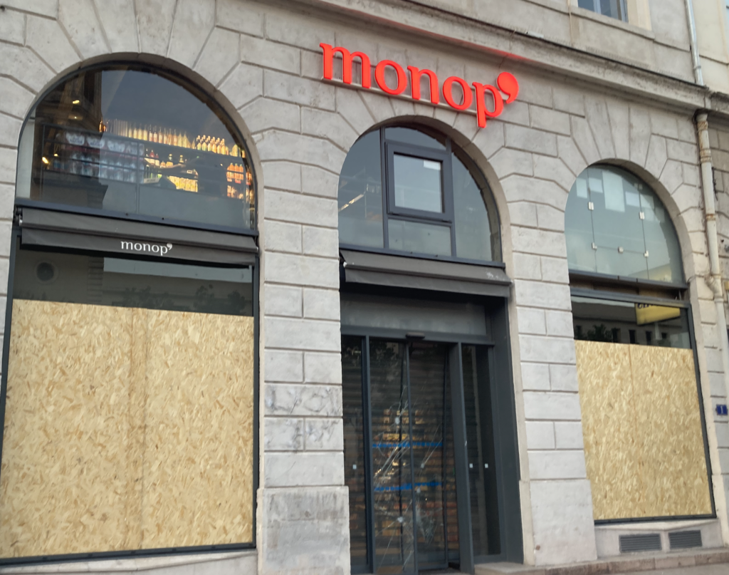 また乗継のパリにもリヨンにも、6月27日に起きた北アフリカのナエル少年射殺をめぐる暴動の影響が色濃く残っていました。ガラスが破られ、スーパーはまだ整理中のところもあり、街中には銃を持った警察官や兵士がたくさん。この暴動に関しては、フランス版 Black Lives Matter問題だとか、ソーシャルメディアを介した単なる若者の暴動だったとか、解釈も定まっていないようですが、暴動の最中だったらやはり相当こわかっただろうとも思いました。